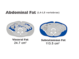 以往查看內臟脂肪需要運用昂貴且有輻射性的電腦斷層掃描。借由電腦斷層結果分析所創建的方程序,生物阻抗分析能推算出內臟脂肪,協助評估身體的肥胖狀況。