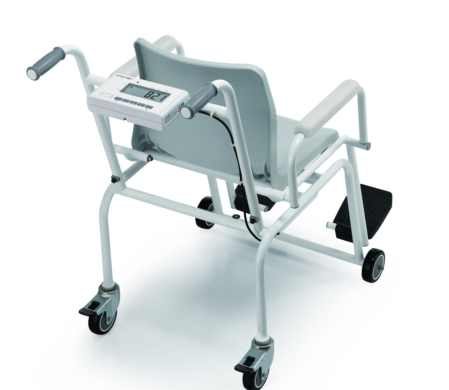 將座椅秤推到病房,即可輕松幫行動不便的病患測量體重。